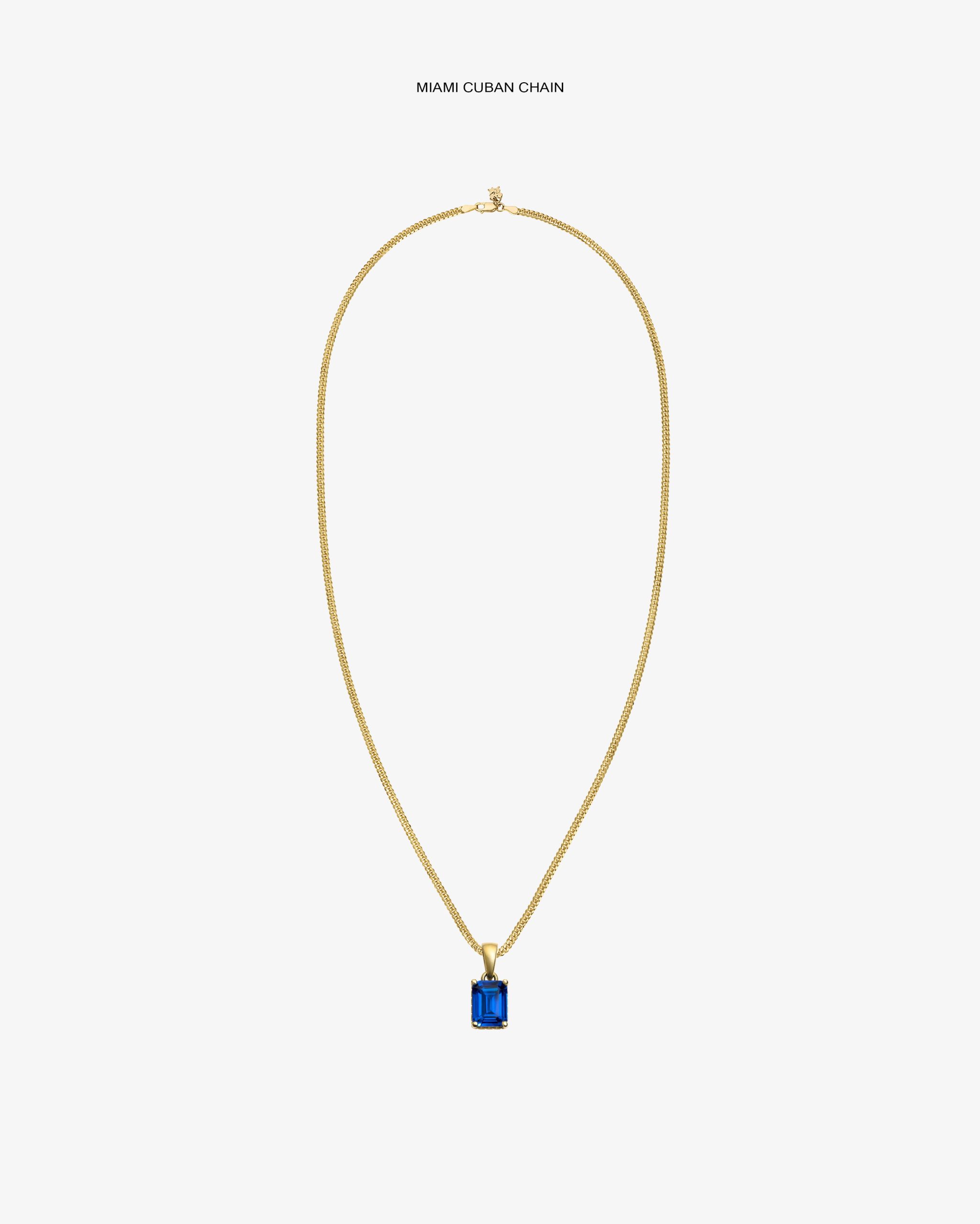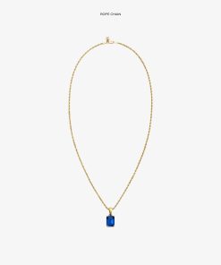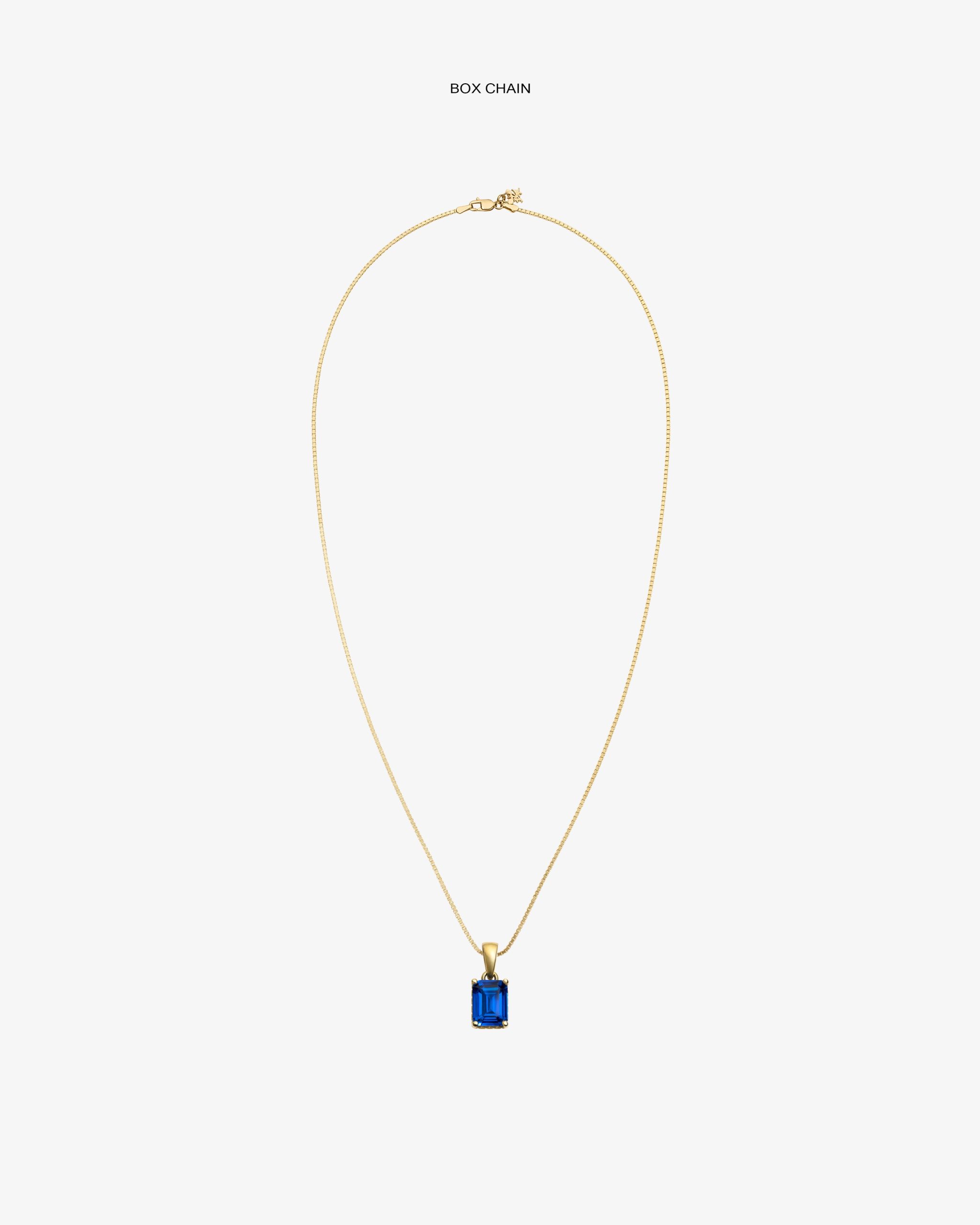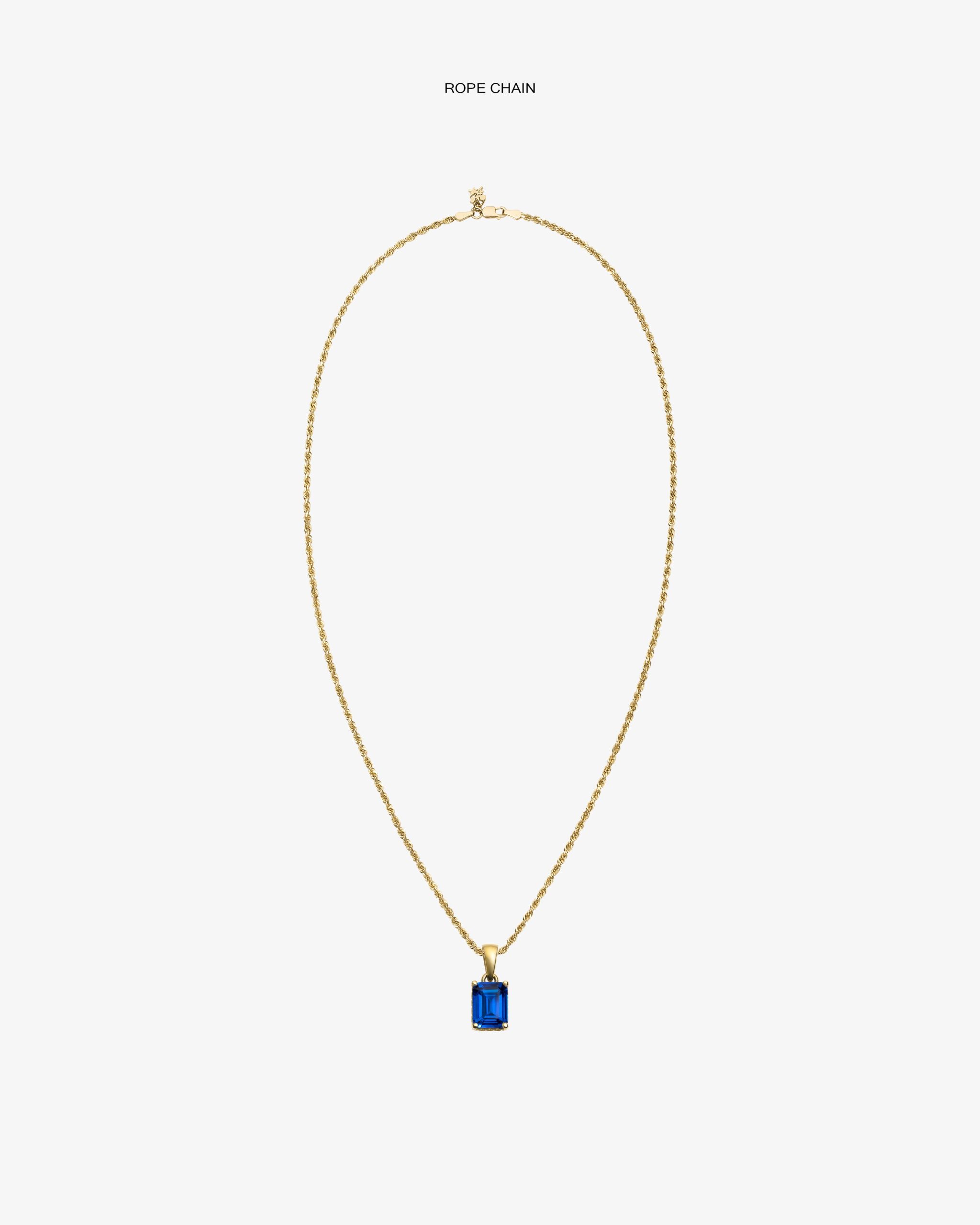 • Solid 14Kt gold base with emerald cut sapphire stone