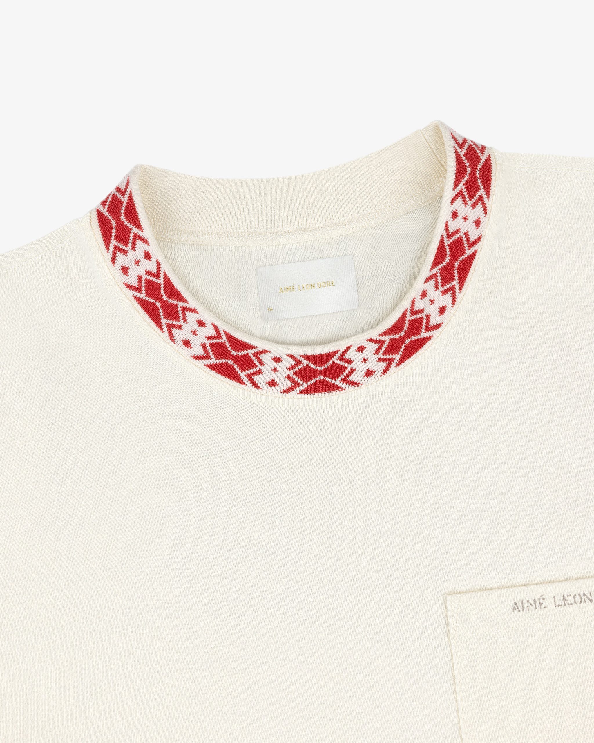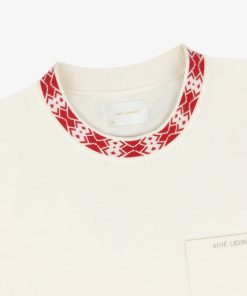 • Greek tile inspired contrast jacquard mockneck collar