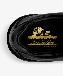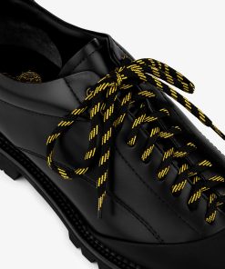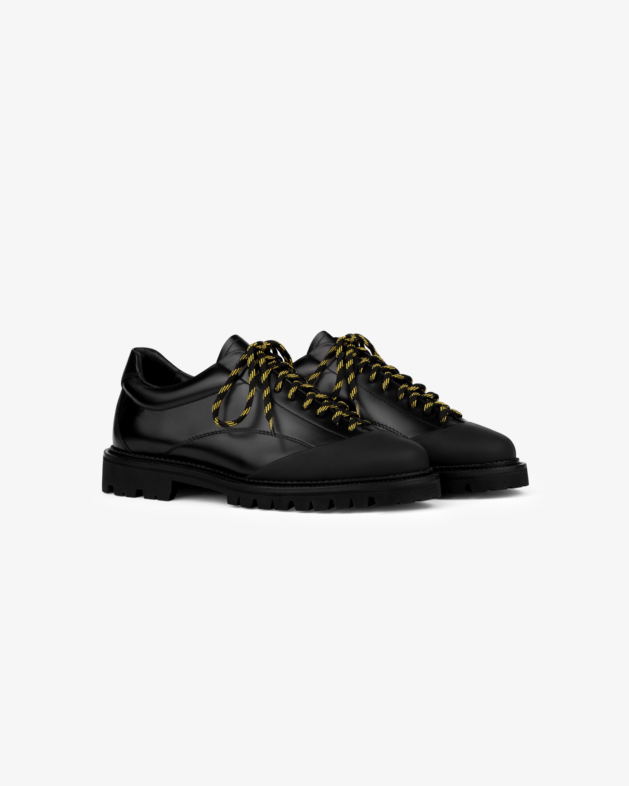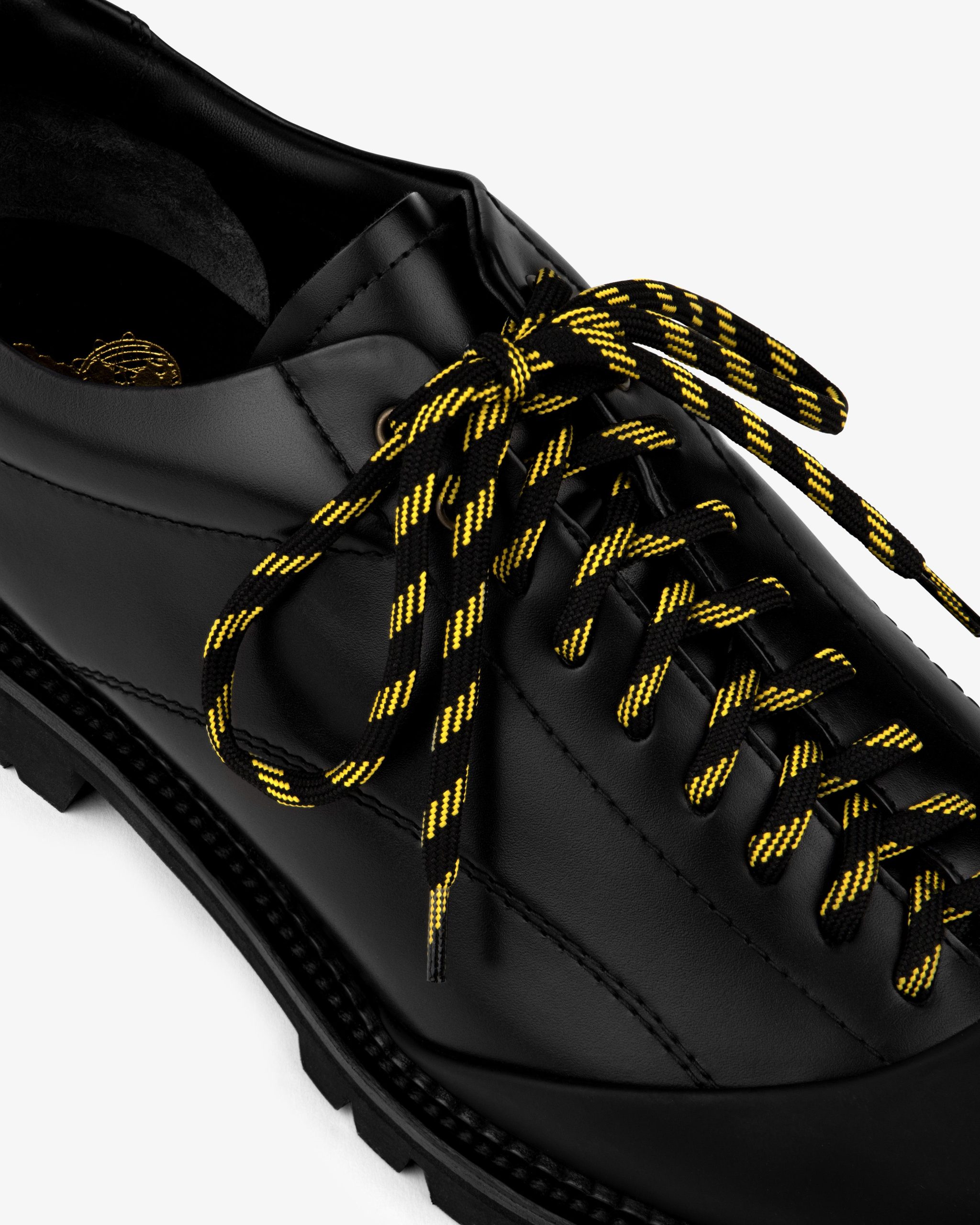 - • Black leather derby