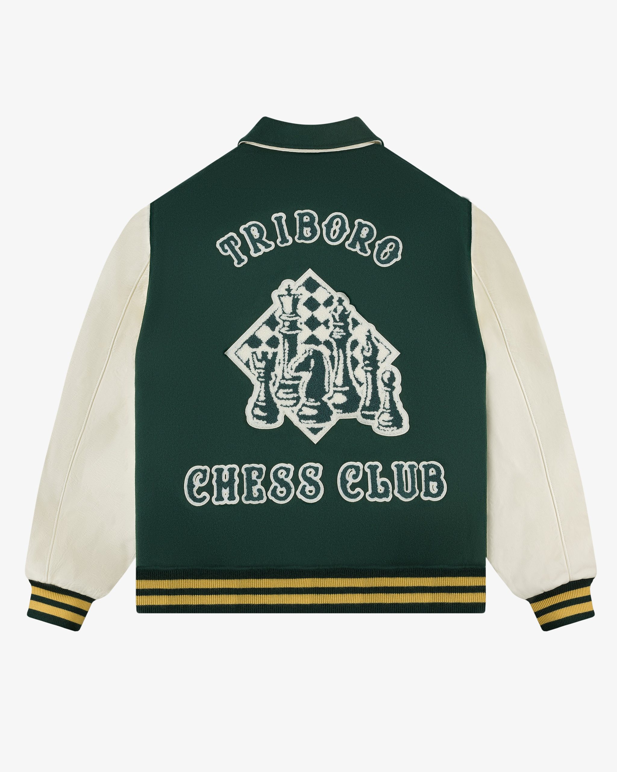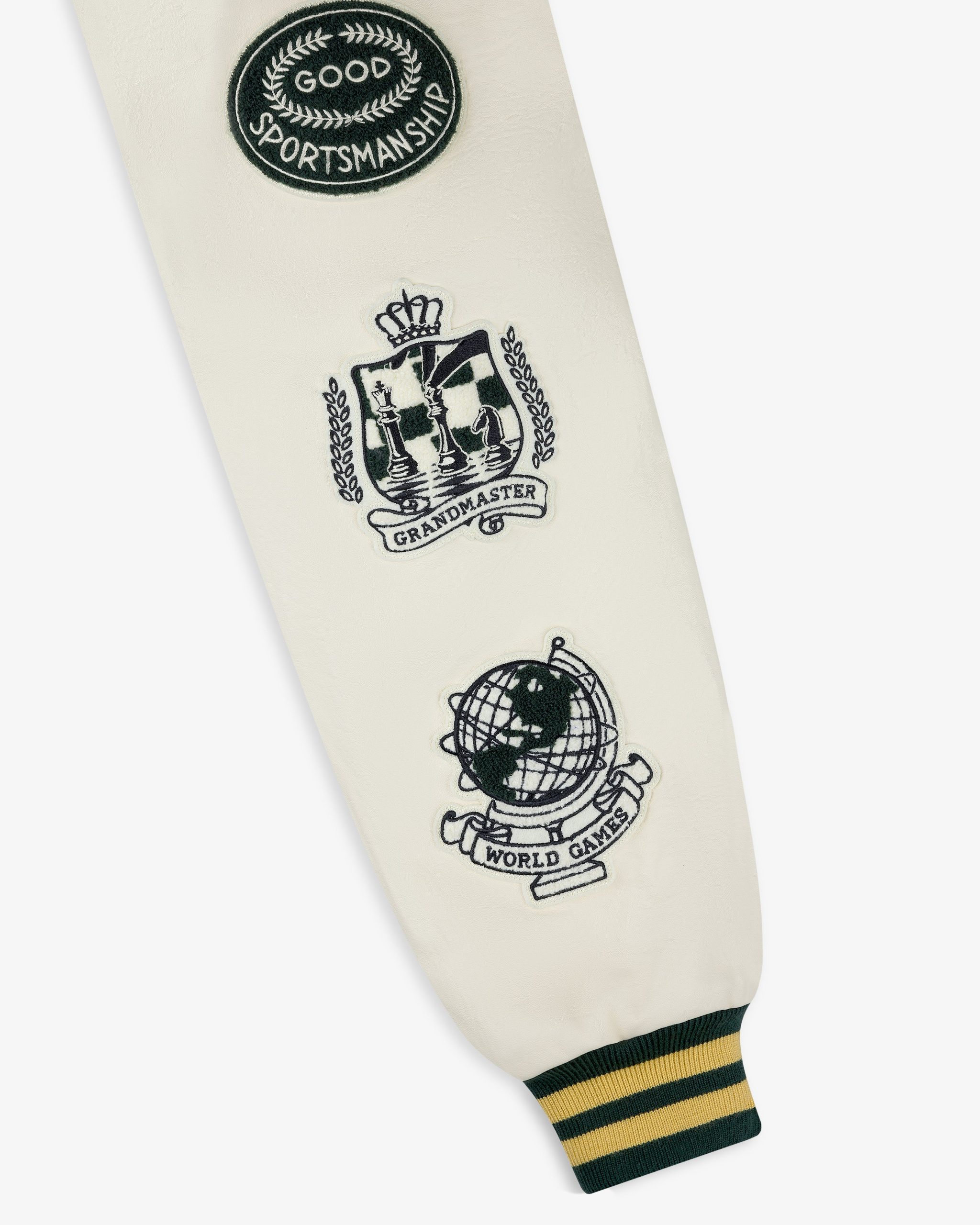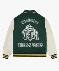 - • Green & cream varsity jacket