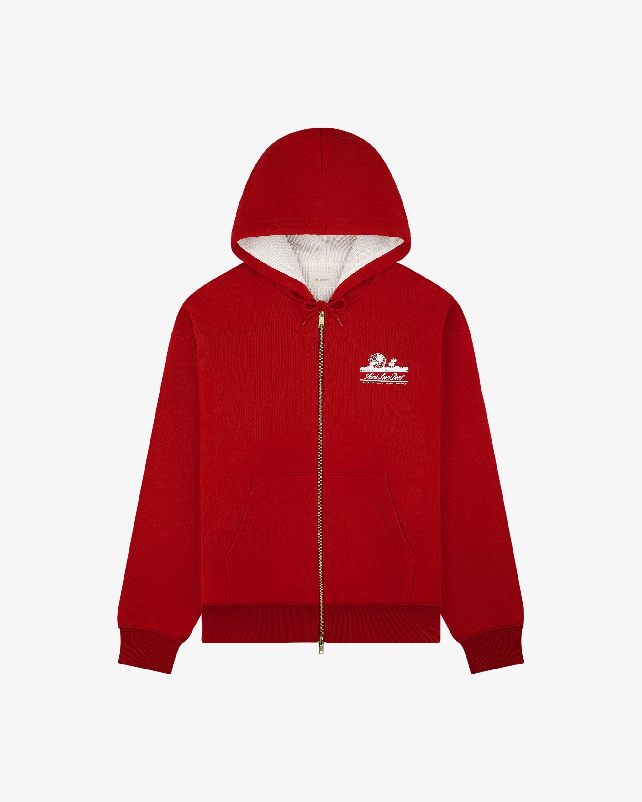Aimé Leon Dore Men’s Unisphere Waffle Lined Full-zip Hoodie | Equestrian Red