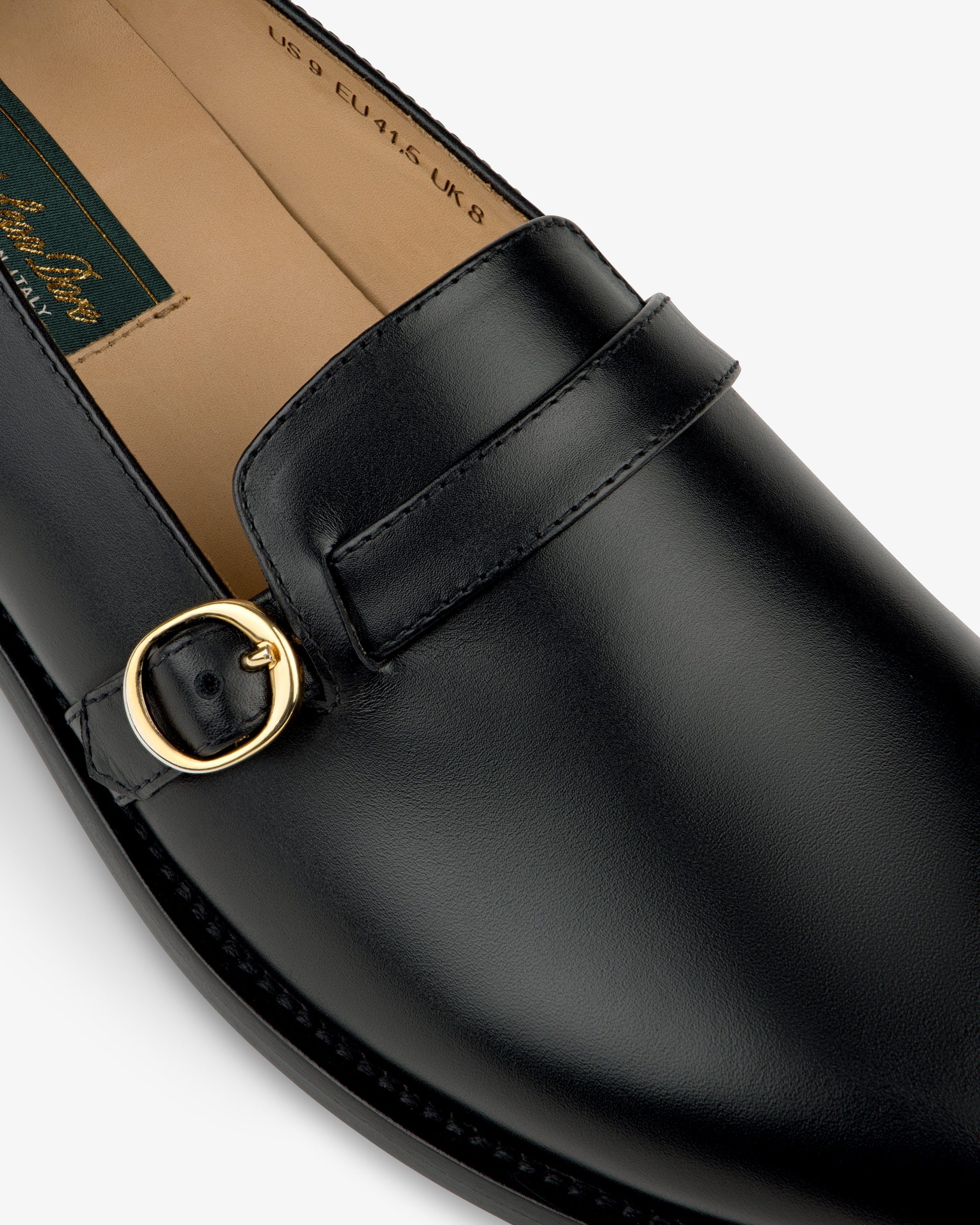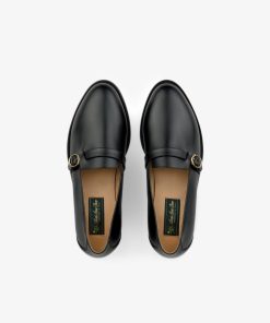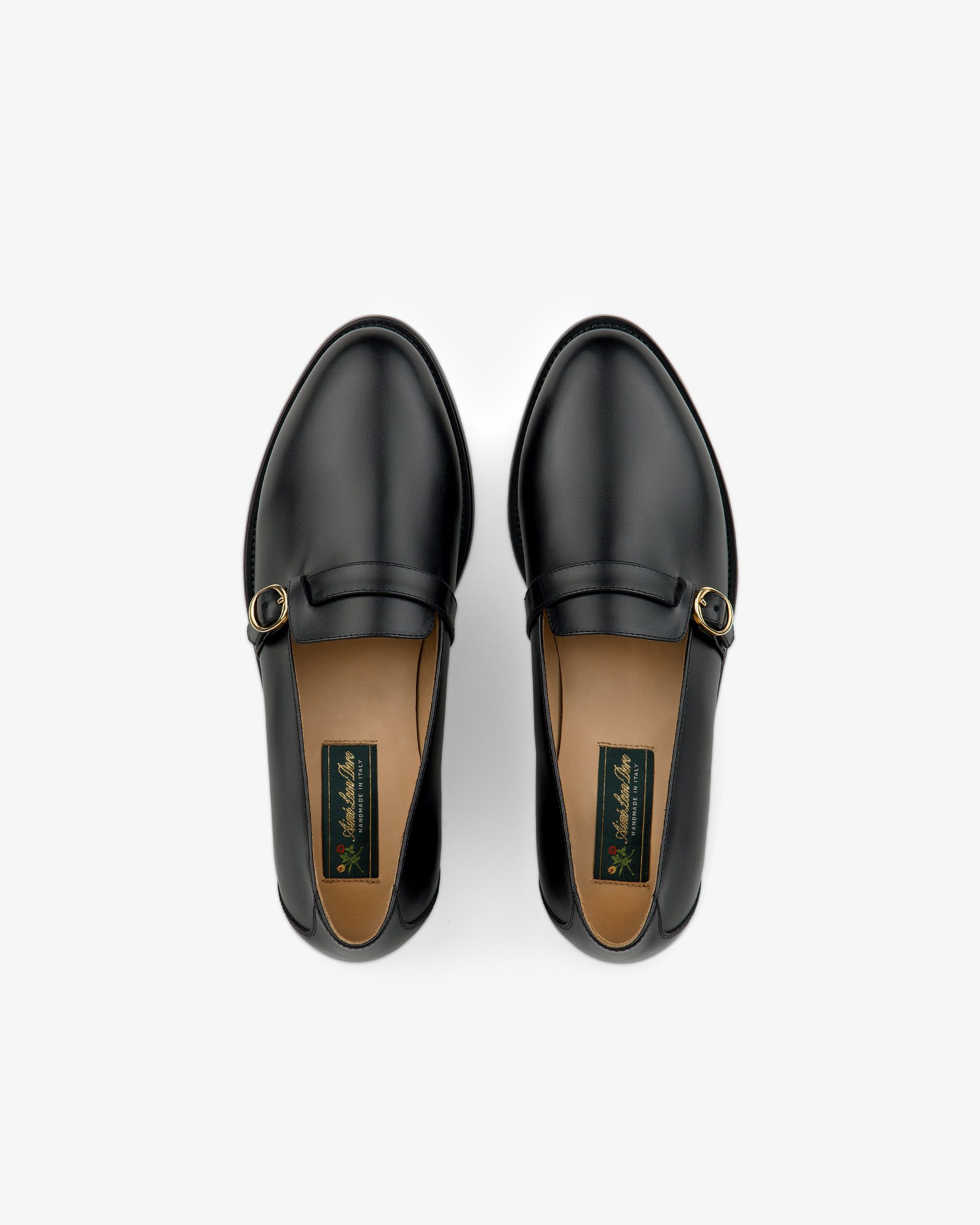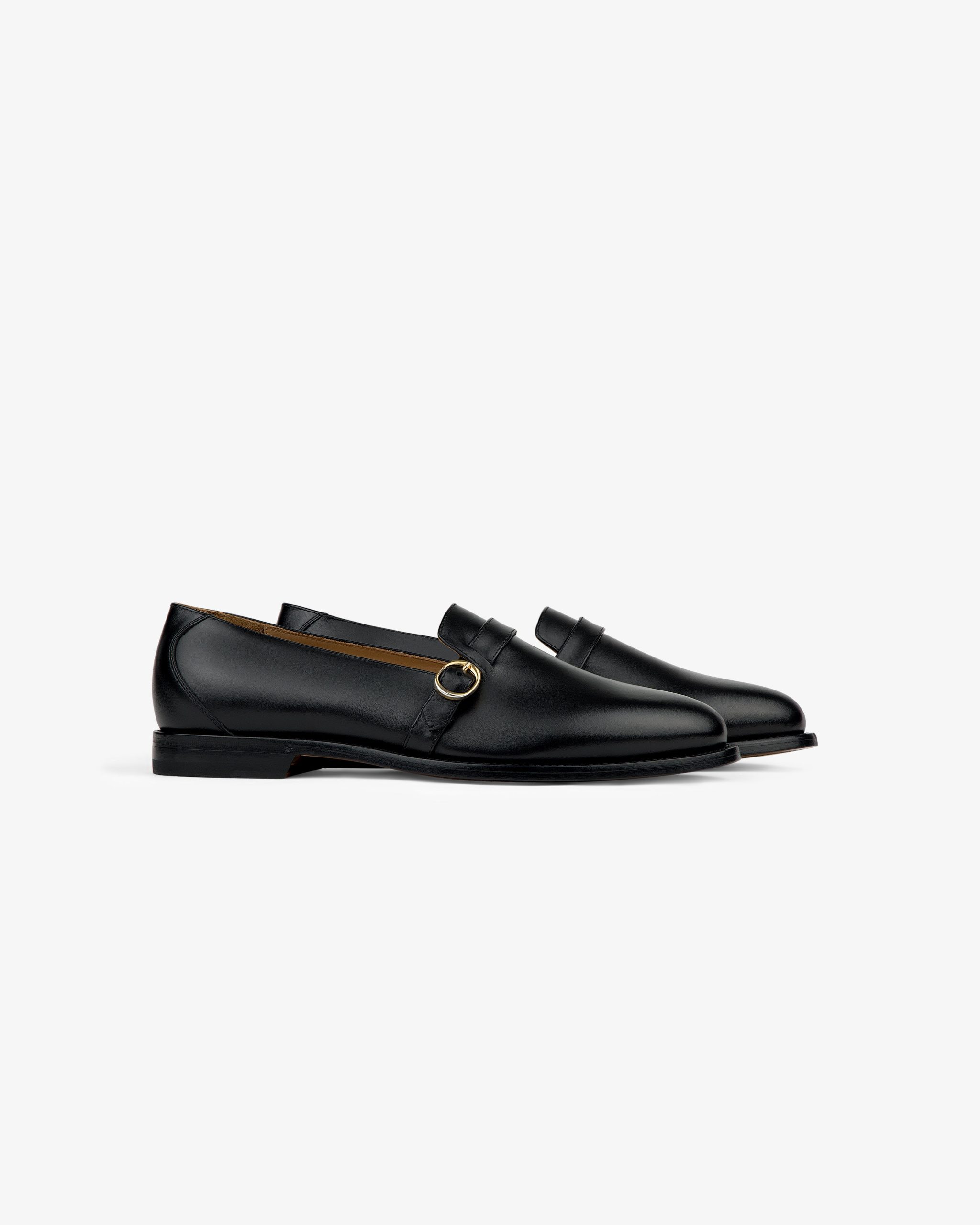 - • Black loafers